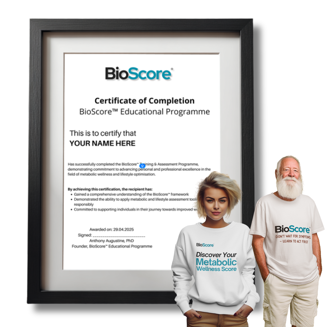Turn your passion for health into impact. With BioScore Online Training, you’ll gain the tools to measure metabolic wellness, inspire lasting lifestyle change, and stand out with recognised certification. Whether you’re a coach, trainer, or wellness professional, this course gives you practical skills and credibility to grow your practice and transform lives.
